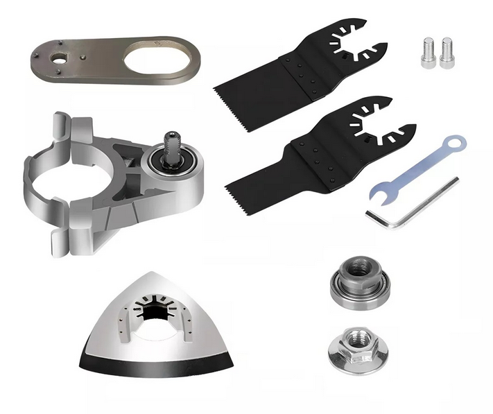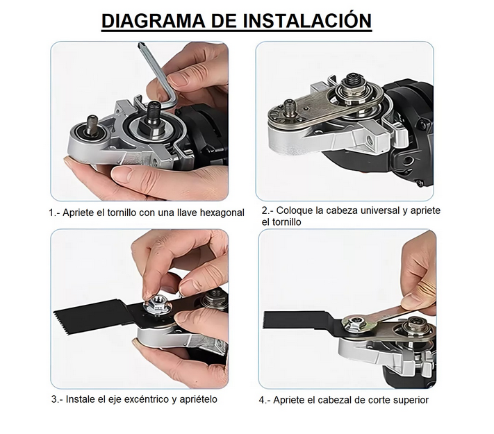 Este adaptador multifuncional oscilante está diseñado para esmeriles angulares, permitiendo convertirlos en herramientas versátiles para una variedad de aplicaciones. Ideal para cortar, lijar y pulir, este accesorio mejora la eficiencia de tu trabajo al proporcionar un rendimiento preciso y cómodo. Compatible con diferentes discos y fácil de instalar, es perfecto para profesionales y aficionados al bricolaje.